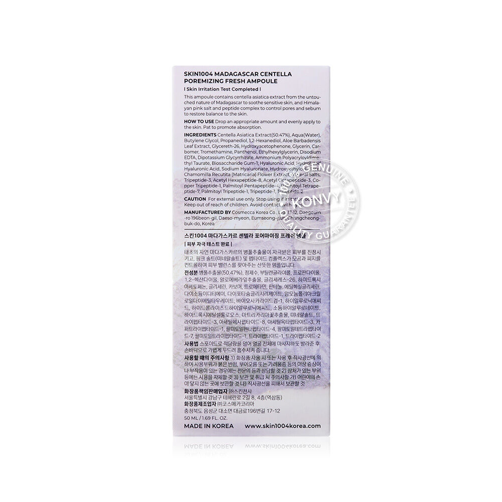 SKIN1004 Madagascar Centella Poremizing Fresh Ampoule 50ml แอมพูลสูตรดูแลรูขุมขน อุดมด้วย Pink Himalayan Salt ช่วยขจัดสิ่งสกปรกตกค้างจากผิวและรูขุมขน ผสานคุณค่าของ Centella Asiatica จากมาดากัสการ์ และ Peptide 9 Complex ช่วยลดความมันส่วนเกิน กระชับรูขุมขน เผยผิวเรียบเนียน กระชับ ดูสุขภาพดี