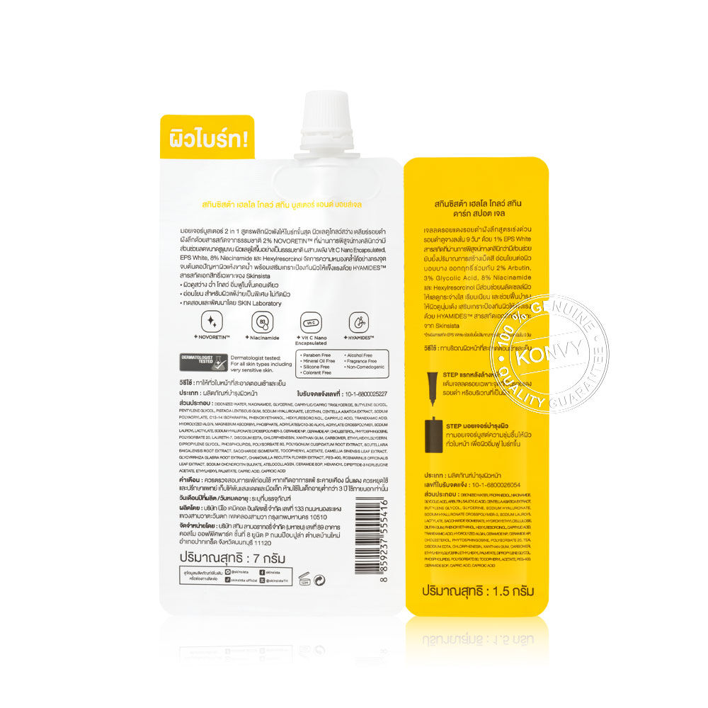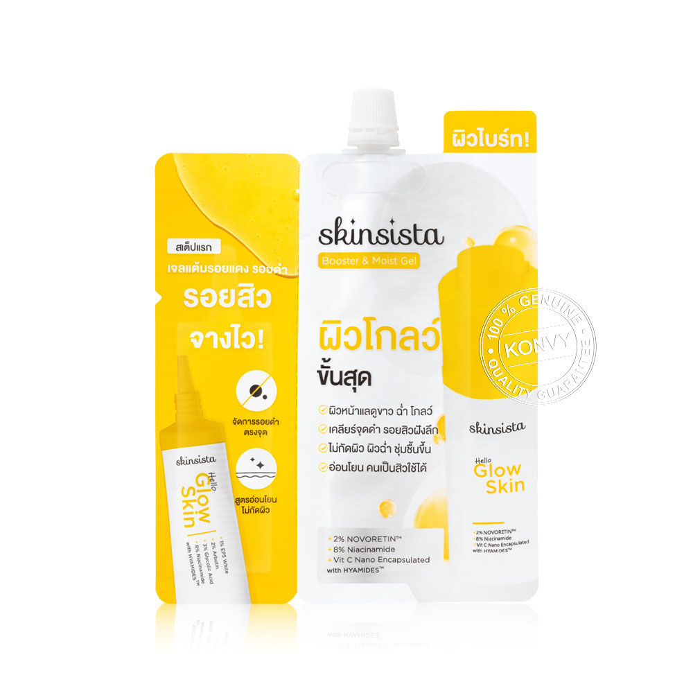 Skinsista Hello Glow Skin Booster & Moist Gel And Hello Glow Skin Dark Spot Gel 8.5g ครีมซองที่รวมทุกรูทีนในซองเดียว ช่วยลดรอยแดง รอยดำ ให้ผิวฉ่ำโกลว์ ชุ่มชื้น