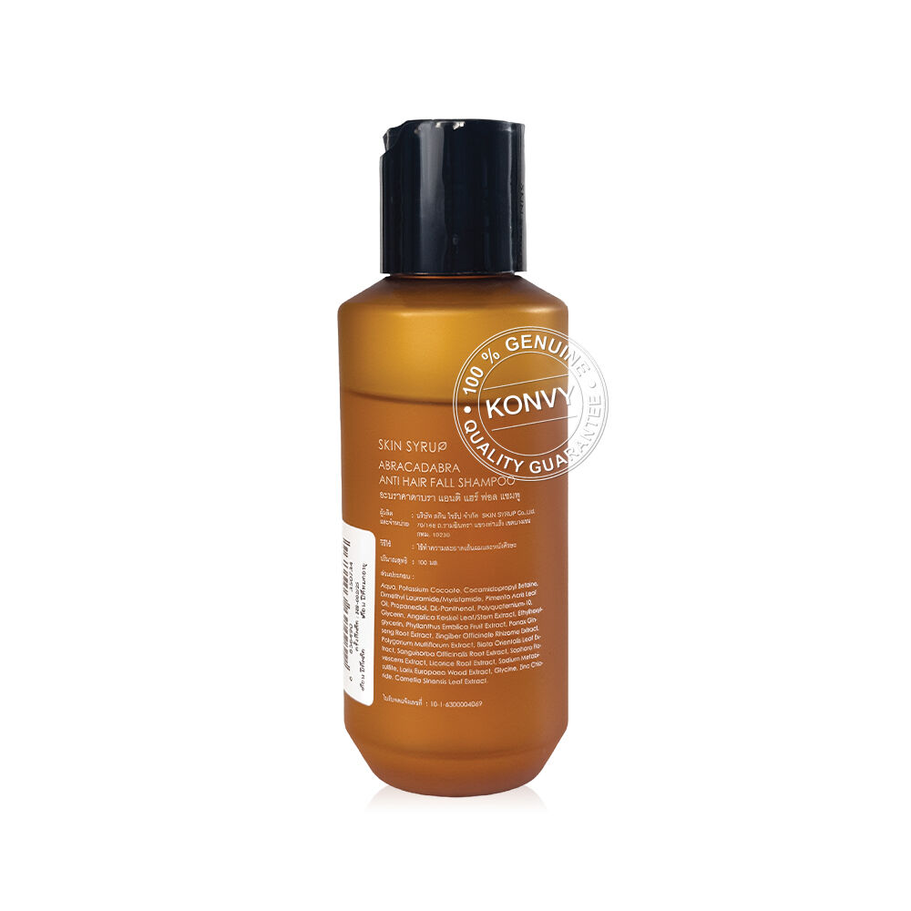 SKIN SYRUP Abracadabra Anti-Hair Fall Shampoo 100ml แชมพูสูตรลดผมร่วง ช่วยปรับสมดุลให้หนังศีรษะและปรับโครงสร้างรากผมให้แข็งแรง ลดการหลุดร่วงของเส้นผม พร้อมช่วยเพิ่มอัตราการเกิดใหม่ของเส้นผมในระยะการเจริญเติบโต (Anagen)