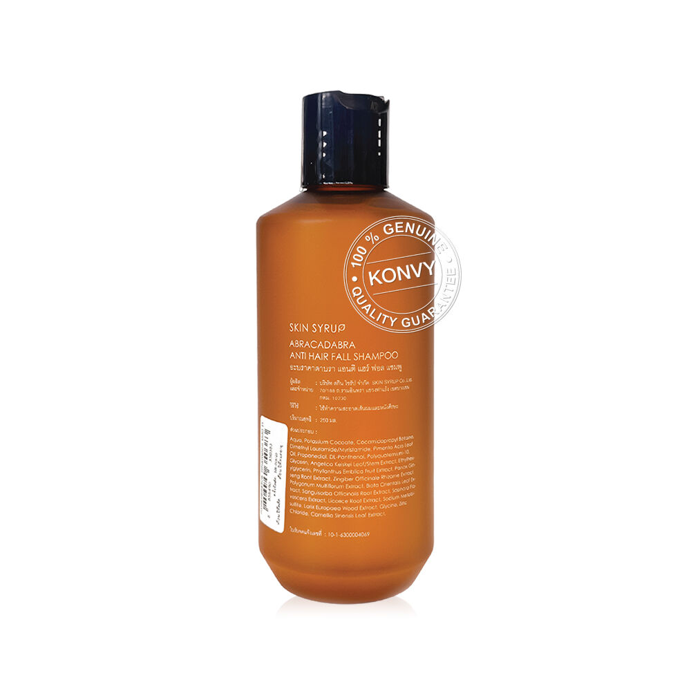 SKIN SYRUP Abracadabra Anti-Hair Fall Shampoo 250ml แชมพูสูตรลดผมร่วง ช่วยปรับสมดุลให้หนังศีรษะและปรับโครงสร้างรากผมให้แข็งแรง ลดการหลุดร่วงของเส้นผม พร้อมช่วยเพิ่มอัตราการเกิดใหม่ของเส้นผมในระยะการเจริญเติบโต (Anagen)