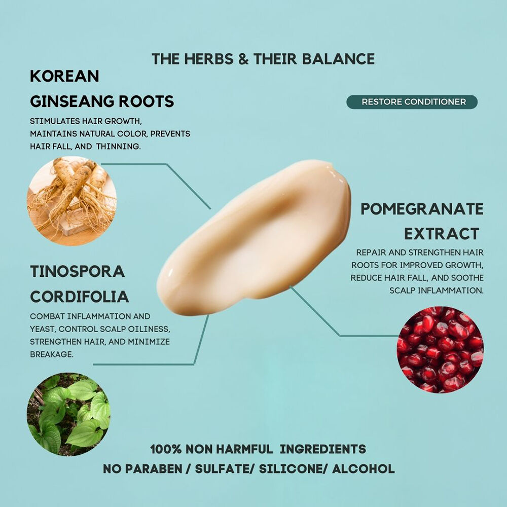 SKIN SYRUP Restore Conditioner 500ml ครีมนวดผมปราศจากซิลิโคน ที่ผสานคุณค่าจากสมุนไพร ช่วยปรับสภาพเส้นผมที่แห้งเสียให้กลับมานุ่มลื่น ชุ่มชื้น ลดการพันกัน โดยไม่เพิ่มความมันหรือทำให้ไขมันอุดตันตกค้างบนหนังศีรษะ พร้อมฟื้นฟูเส้นผมให้แข็งแรงและสุขภาพดี ช่วยปิดเกล็ดผมให้ผมเงางามสวยแบบธรรมชาติ ผมแข็งแรง นุ่ม และเงางามอย่างเป็นธรรมชาติ
