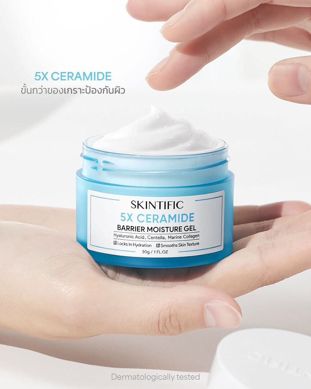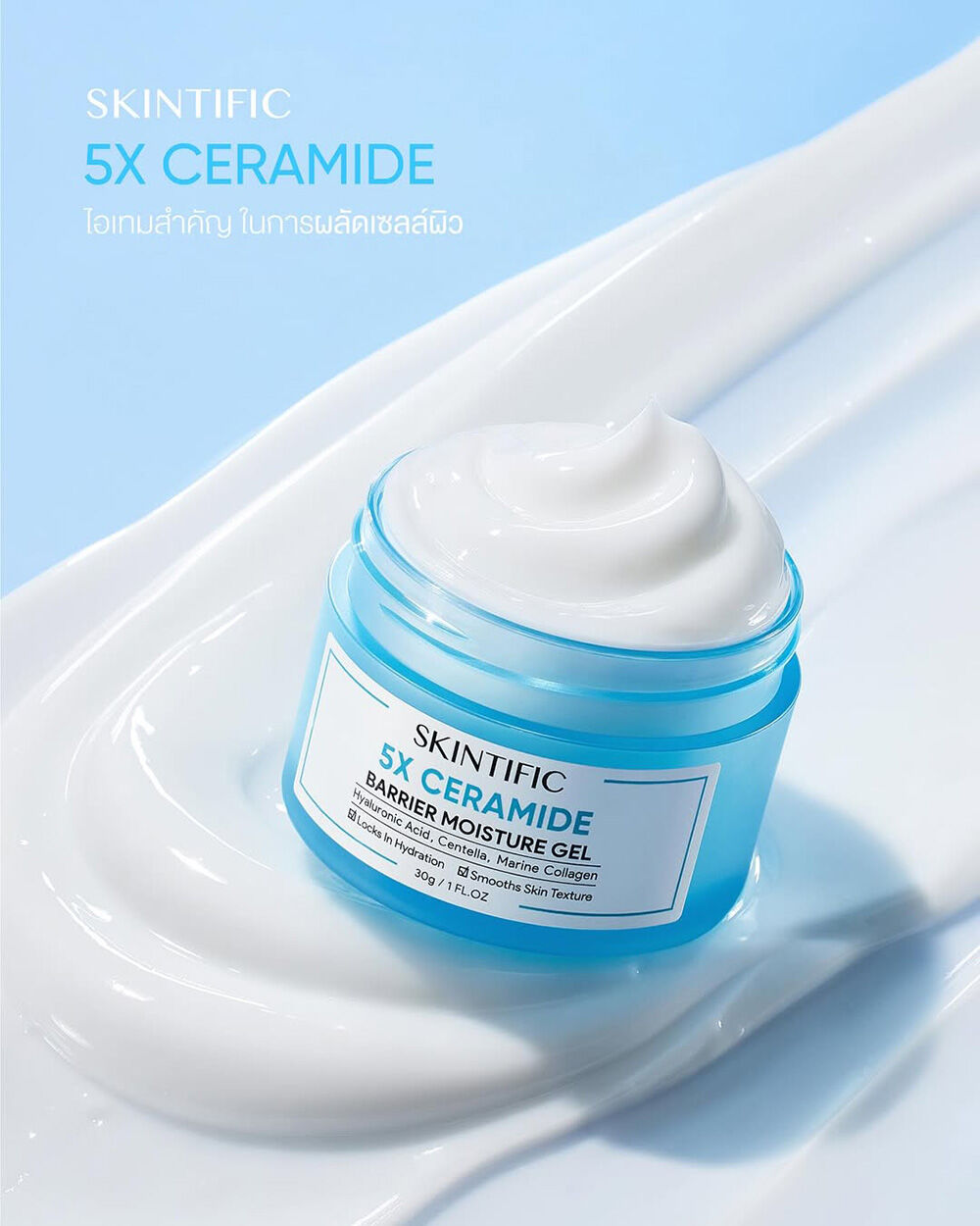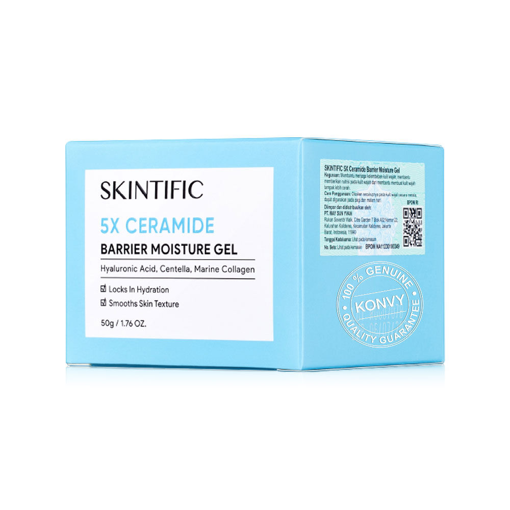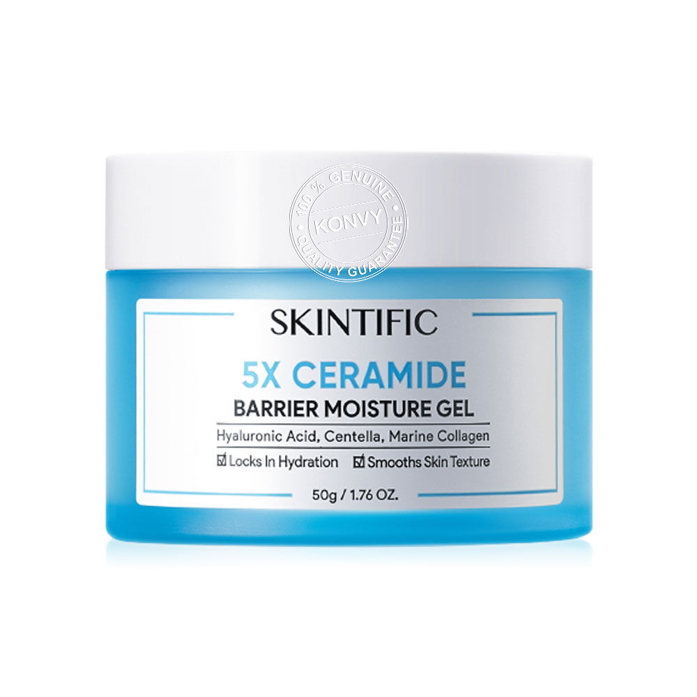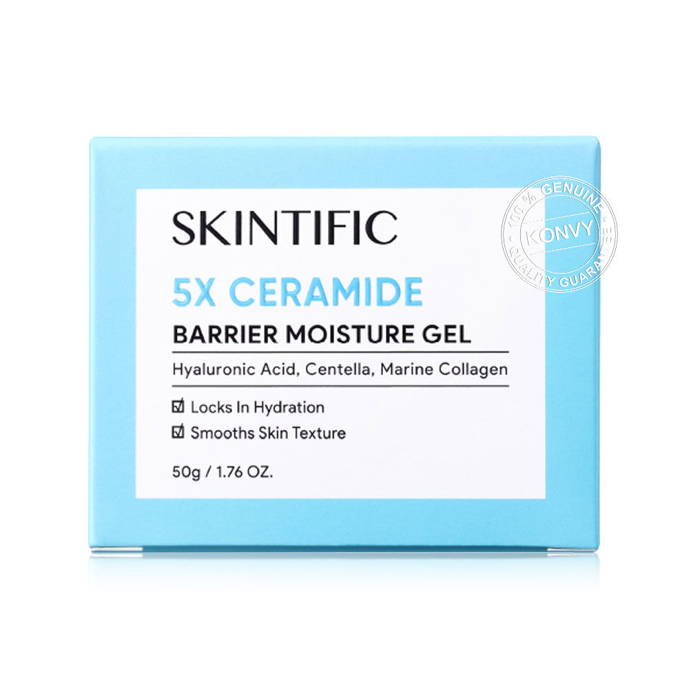 SKINTIFIC 5X Ceramide Barrier Moisture Gel 50g มอยเจอไรเซอร์เนื้อสัมผัสบางเบา มอบความชุ่มชื้นสูง ด้วยเซราไมด์ช่วยเสริมเกราะป้องกันผิว ผสานกรดไฮยาลูโรนิค ใบบัวบก และคอลลาเจนจากทะเล ทำให้ผิวแข็งแรง