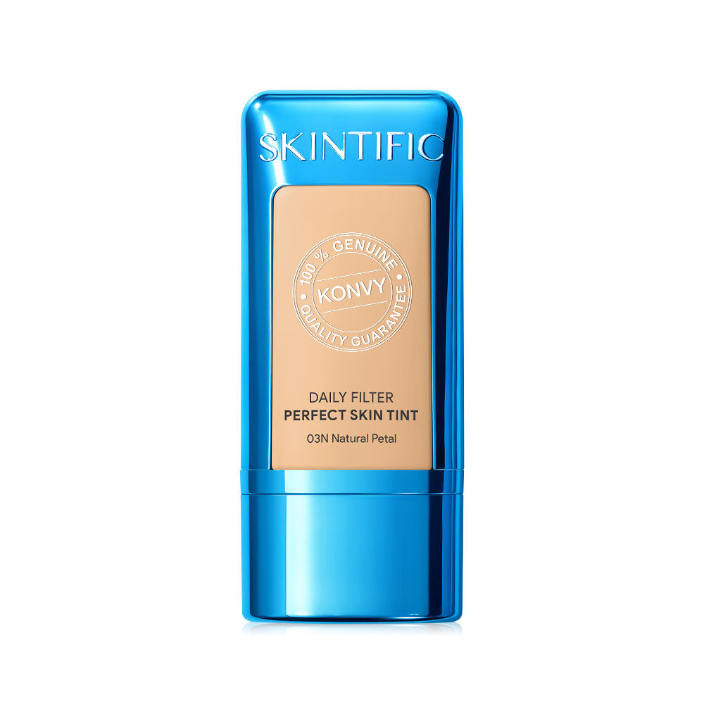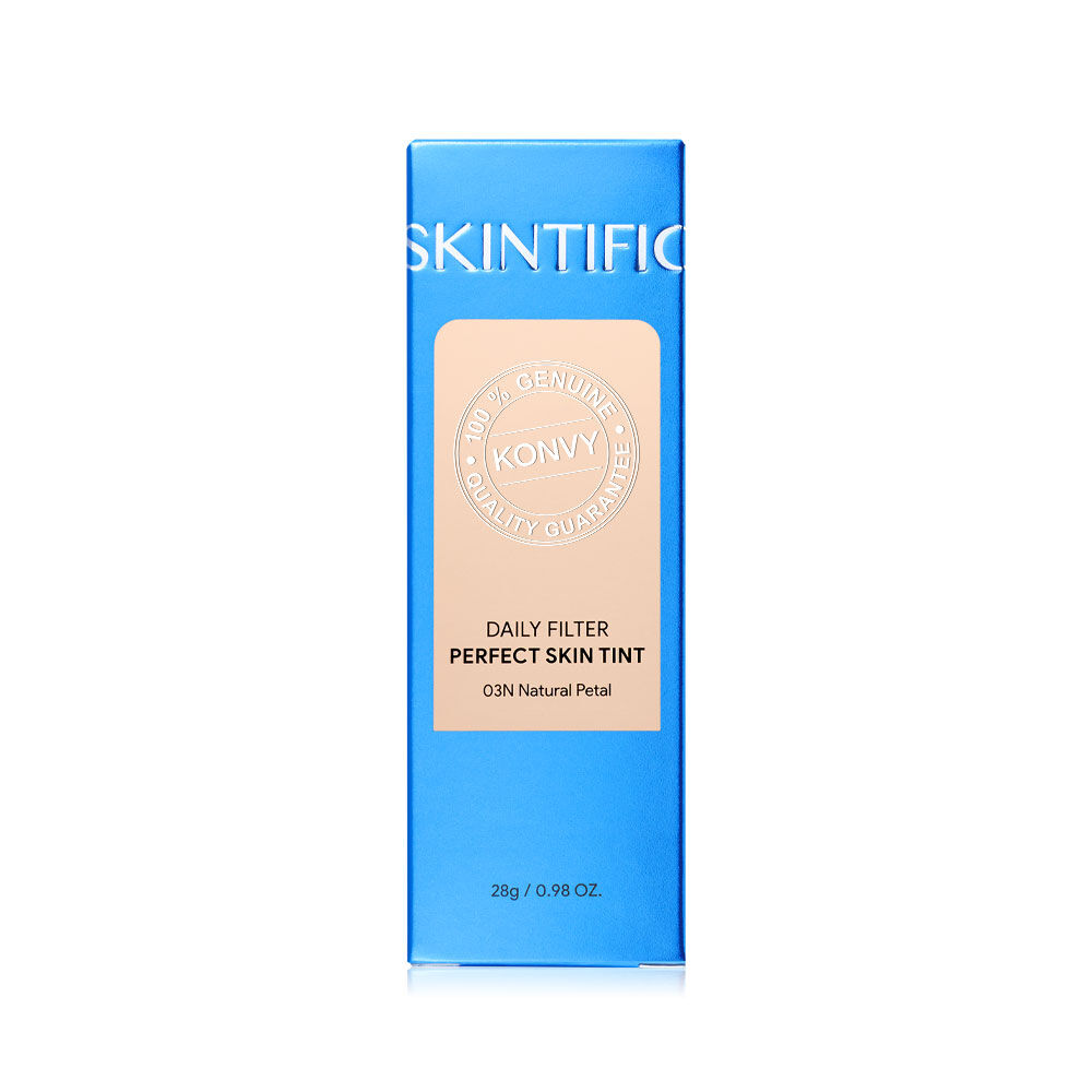 SKINTIFIC Daily Filter Perfect Skin Tint 28g #03N Natural Petal สกินทินท์เนื้อบางเบา ไม่หนักหน้า เกลี่ยง่าย เนียนไปกับผิว ไม่เป็นคราบ ติดทนยาวนาน ด้วยเทคโนโลยี Silicone-Based Film ช่วยล็อคเมคอัพยาวนาน และให้การปกปิดที่เรียบเนียน ผสานสารบำรุงจาก Vitamin E และ Panthenol ช่วยปลอบประโลม และเติมความชุ่มชื้นให้ผิว พร้อมด้วย Betaine ช่วยเสริมเกราะป้องกันผิวให้แข็งแรง มอบฟินิชผิวเนียนสวยสุขภาพดี ดูเป๊ะมั่นใจได้ตลอดวัน