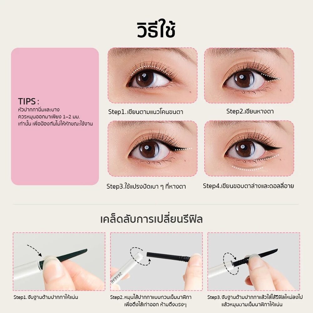• เนื้อสัมผัสลื่น กันน้ำ กันเหงื่อ ไม่เลอะ ติดทนตลอดวัน