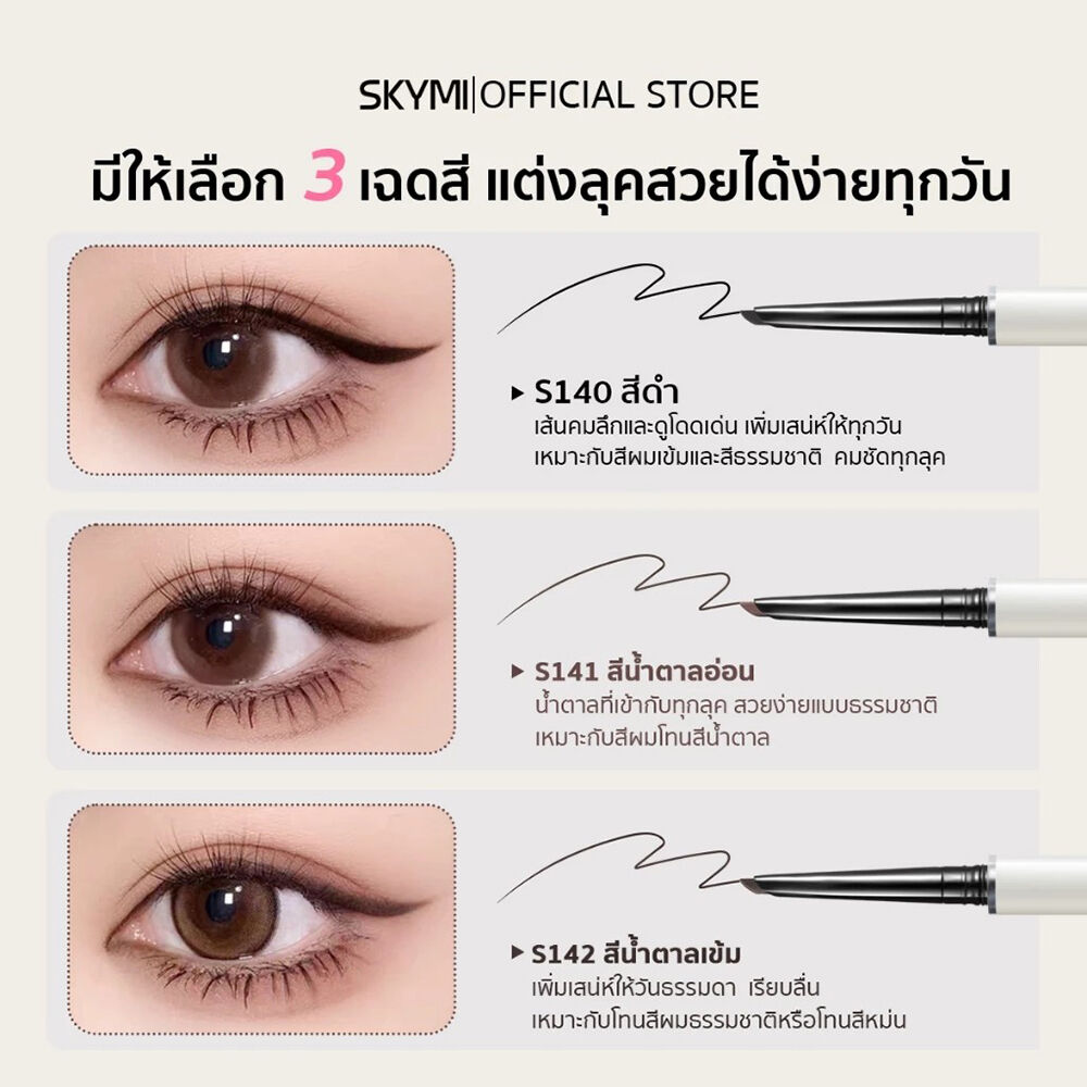 SKYMI 2-in-1 Gel Pencil & Brush 0.05g + Refill 0.05g #Black เจลไลเนอร์ 2in1 สีดำ เนื้อสัมผัสลื่น กันน้ำ กันเหงื่อ ไม่เลอะ ติดทนตลอดวัน มีปากกาหัวตัดเรียวเล็กเพียง 3 มม. วาดง่าย ให้เส้นคมชัดดั่งใจ และแปรงทรงโค้ง ใช้งานง่าย มาพร้อมรีฟิลในเซท
