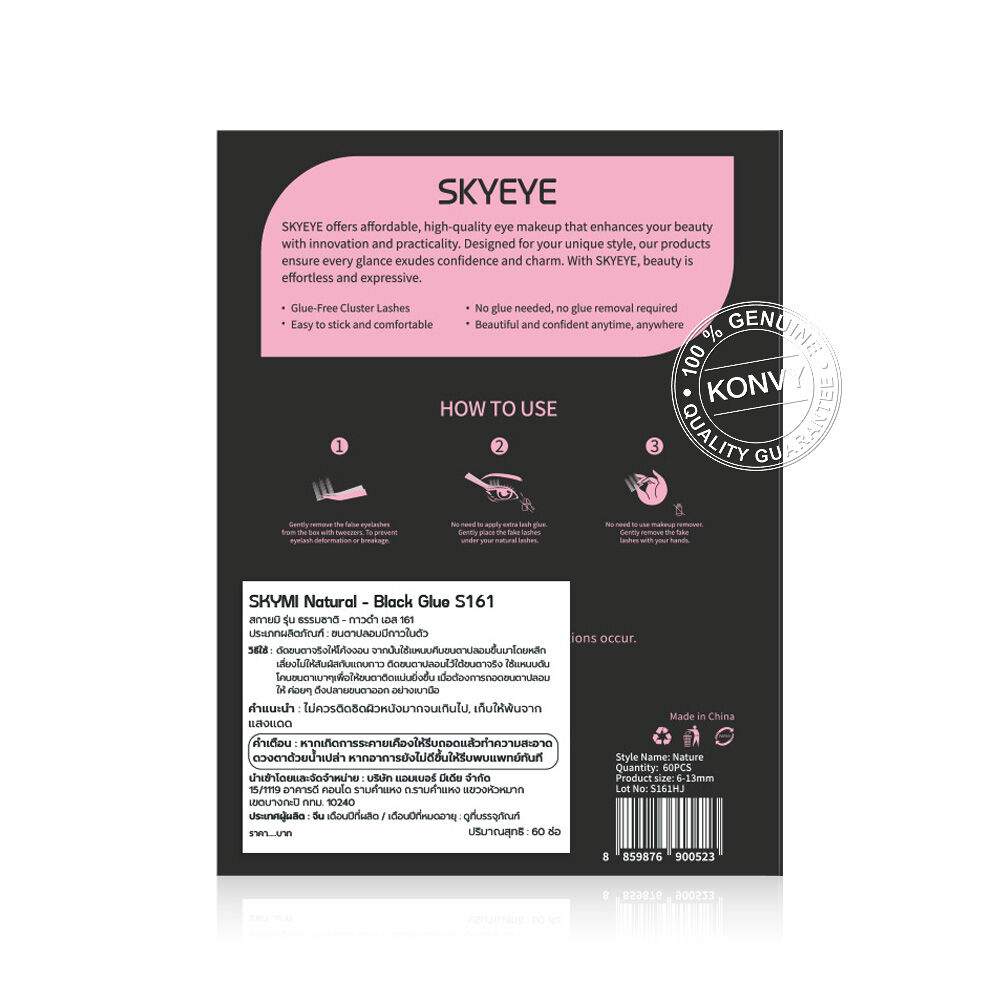 SKYMI Eyelashes Black Glue 60pcs #S161 Natural ขนตาปลอมแบบมีกาวในตัว รุ่นธรรมชาติ กาวสีดำ ทำจากเส้นใยสังเคราะห์คุณภาพพรีเมียม เบาสบาย ไม่หนักตา ใช้งานง่าย ติดแน่น เพิ่มมิติให้ดวงตา ให้ลุคตาใสๆ เป็นธรรมชาติ แต่มีเสน่ห์เกินต้าน