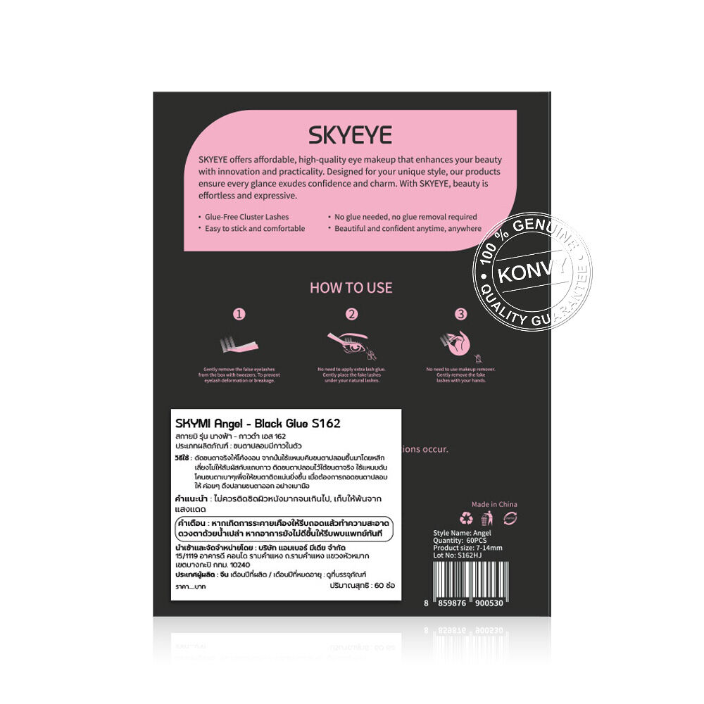 SKYMI Eyelashes Black Glue 60pcs #S162 Angel ขนตาปลอมแบบมีกาวในตัว รุ่นนางฟ้า กาวสีดำ ทำจากเส้นใยสังเคราะห์คุณภาพพรีเมียม เบาสบาย ไม่หนักตา ใช้งานง่าย ติดแน่น เพิ่มมิติให้ดวงตา ให้ลุคตาใสๆ เป็นธรรมชาติ แต่มีเสน่ห์เกินต้าน