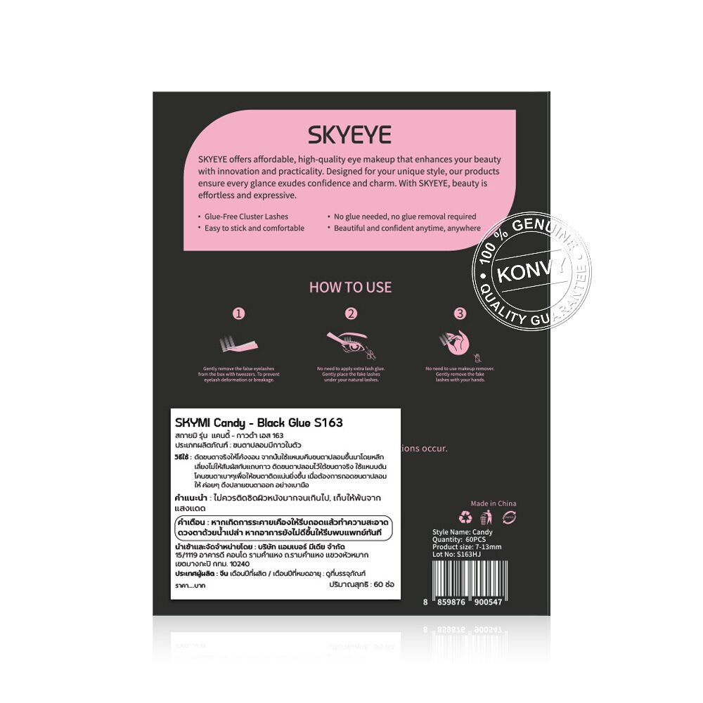 SKYMI Eyelashes Black Glue 60pcs #S163 Candy ขนตาปลอมแบบมีกาวในตัว รุ่นแคนดี้ กาวสีดำ ทำจากเส้นใยสังเคราะห์คุณภาพพรีเมียม เบาสบาย ไม่หนักตา ใช้งานง่าย ติดแน่น เพิ่มมิติให้ดวงตา ให้ลุคตาใสๆ เป็นธรรมชาติ แต่มีเสน่ห์เกินต้าน
