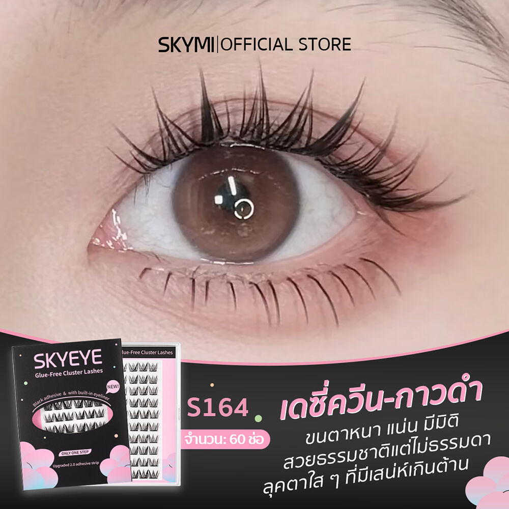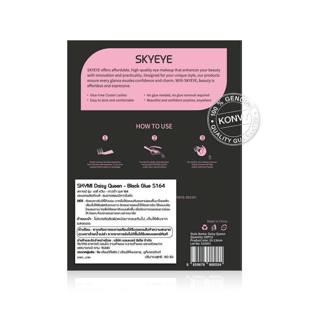 SKYMI Eyelashes Black Glue 60pcs #S164 Daisy Queen ขนตาปลอมแบบมีกาวในตัว รุ่นเดซี่ ควีน กาวสีดำ ทำจากเส้นใยสังเคราะห์คุณภาพพรีเมียม เบาสบาย ไม่หนักตา ใช้งานง่าย ติดแน่น เพิ่มมิติให้ดวงตา ให้ลุคตาใสๆ เป็นธรรมชาติ แต่มีเสน่ห์เกินต้าน