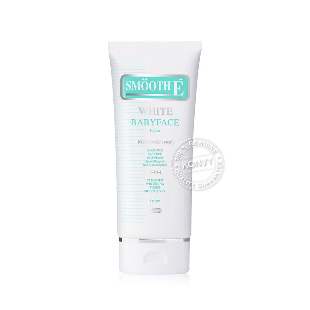 Smooth E White Babyface Foam 180ml โฟมล้างหน้าสูตรไม่มีฟอง เพื่อผิวขาวอ่อนเยาว์ สูตร Non-ionic 100% ทำความสะอาดผิวหน้าได้ล้ำลึก ไม่ทิ้งสารตกค้างบนผิวหน้าอันเป็นสาเหตุหลักของการเกิดสิวและริ้วรอย อุดมด้วยสารสกัด Melawhite จากสวิตเซอร์แลนด์ ที่ช่วยยับยั้งการเม็ดสีที่ผิดปกติ ผสานสารสกัดธรรมชาติ Licorice วิตามินซี และวิตามินอี ที่ช่วยกระตุ้นการผลัดเซลล์ผิวใหม่ให้กระจ่างใสอย่างเป็นธรรมชาติ และบำรุงผิวให้ผิวชุ่มชื้นไม่แห้งตึง