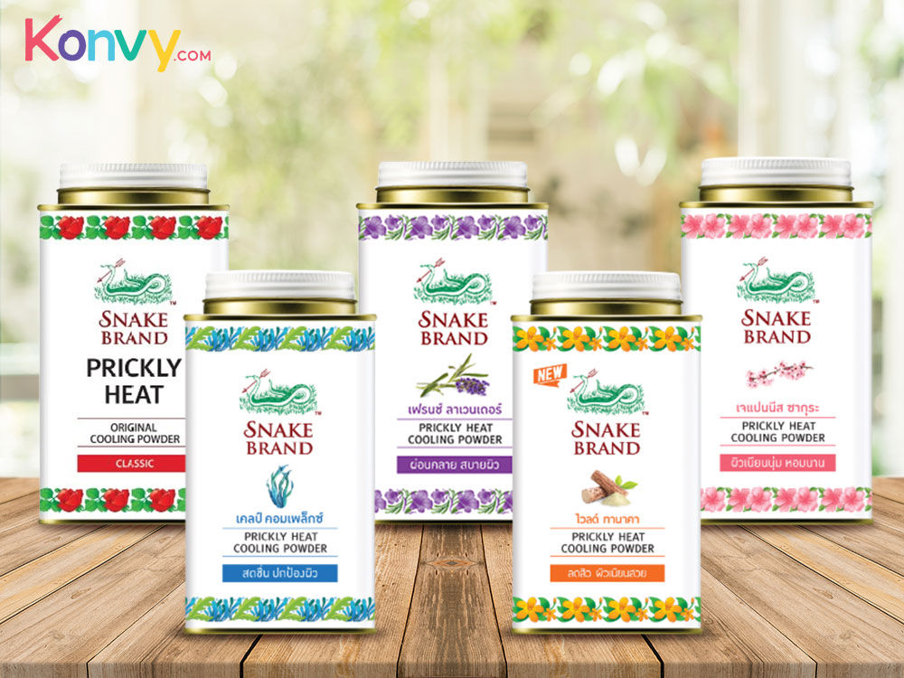 Snake Brand Prickly Heat Original Cooling Powder [140g x 3pcs] #Classic แป้งเย็นตรางู สูตรคลาสสิค ต้นตำรับแป้งเย็นที่ให้ความเย็นสดชื่น สบายผิว ช่วยลด ผด ผื่น คัน และอาการระคายเคืองตามผิวหนังที่เกิดจากอากาศร้อน มีกลิ่นหอมสดชื่นของน้ำมันหอมระเหยจากเอสเซนเชียลออยล์จากธรรมชาติ