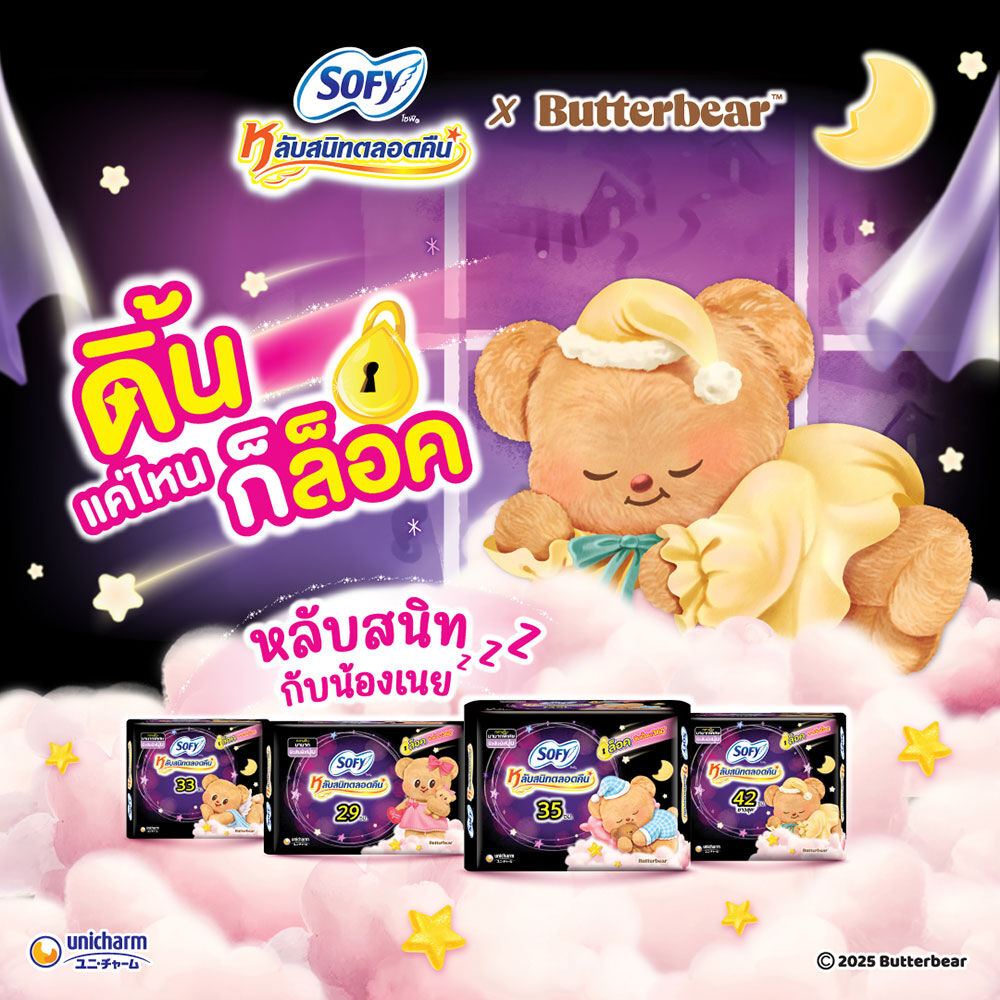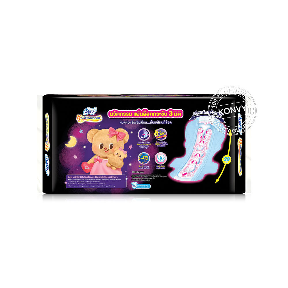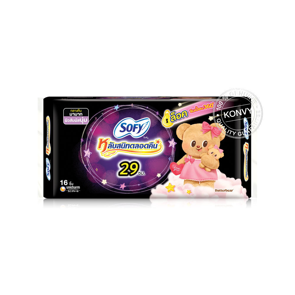 Sofy x Butterbear ผ้าอนามัย Body Fit Night 29cm [16pcs x 3 Packs] ผ้าอนามัยสำหรับกลางคืนแบบกระชับ หลับสนิทตลอดคืนด้วยความพิเศษ 29 ซม. ปกป้องทุกท่า มั่นใจตลอดคืน