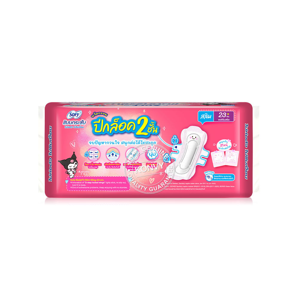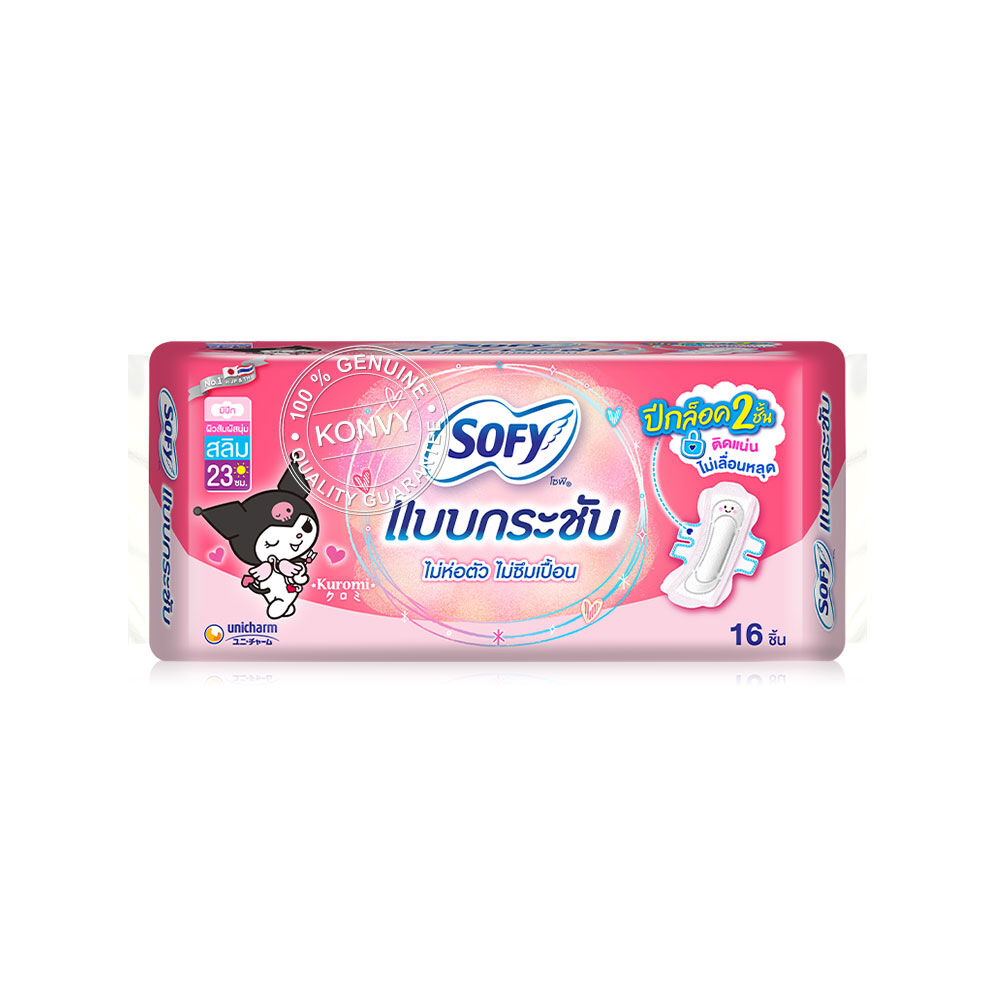 Sofy ผ้าอนามัย Body Fit Slim Wing 23cm [16pcs x 3 Packs] ผ้าอนามัยสำหรับกลางวันแบบมีปีก แผ่นสลิมบางเฉียบยาว 23 ซม. ไม่ห่อตัว ไม่ซึมเปื้อนด้วยแผ่นคืนรูปพิเศษ ช่วยให้แผ่นคืนรูปเดิมได้ดีเยี่ยม แม้เคลื่อนไหวอย่างไรก็ไม่ห่อตัว