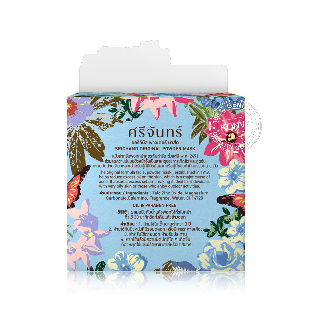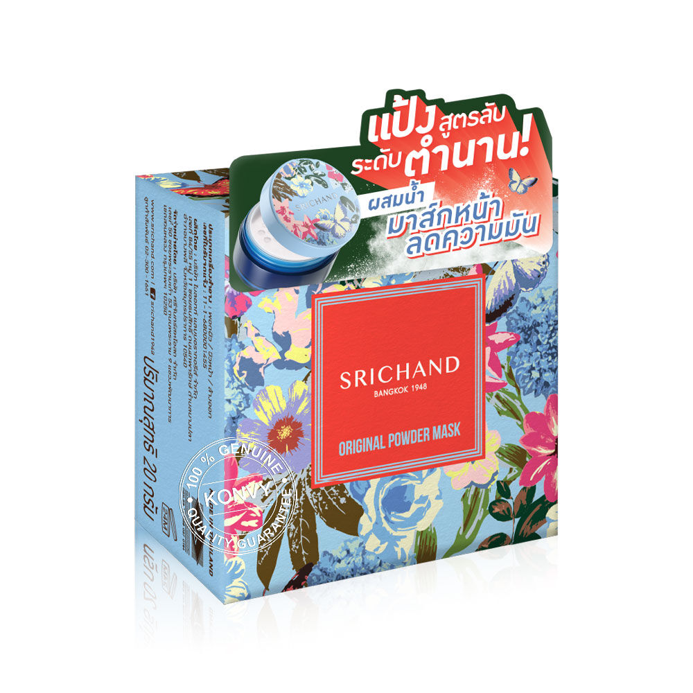 Srichand Original Powder Mask 20g แป้งสำหรับพอกหน้าสูตรต้นตำรับ ตั้งแต่ปี พ.ศ. 2491 ช่วยลดความมันส่วนเกินบนผิวหน้าอันเป็นสาเหตุของการเกิดสิว และช่วยดูดซับความมันส่วนเกินบนใบหน้า ให้ผิวแลดูเรียบเนียน สุขภาพดี ไม่มันวาว