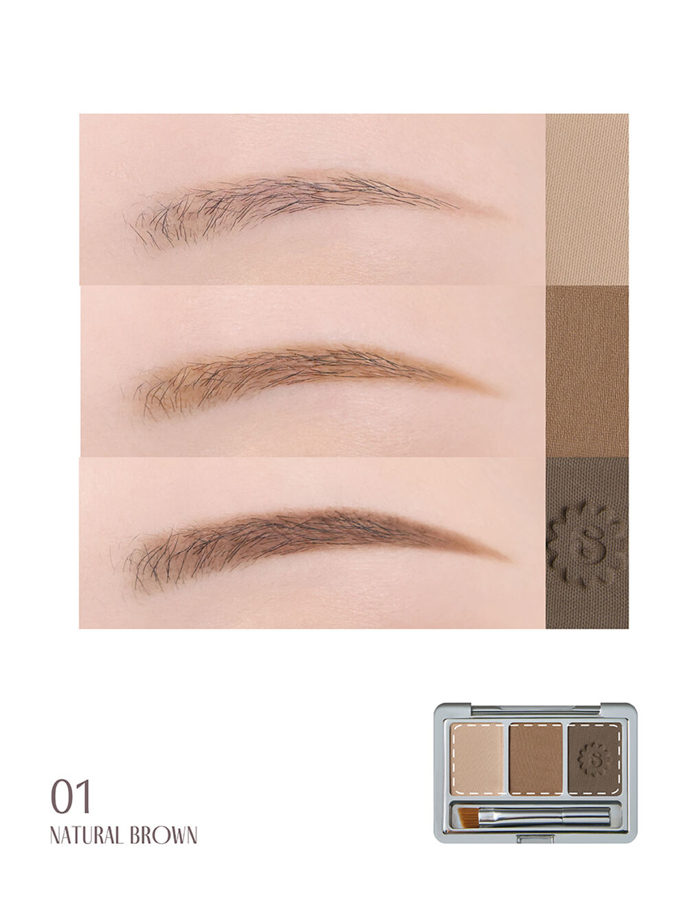 SUPERMOM Eyebrow Perfection Kit 5.1g #01 Natural Brown พาเลทเขียนคิ้ว 3 เฉดสีในตลับเดียว ที่ช่วยให้การตกแต่งคิ้วของคุณง่ายและเป๊ะทุกองศา ประกอบด้วย 3 เฉดสีน้ำตาลธรรมชาติ ไล่โทนจากอ่อนถึงเข้ม เพื่อให้สามารถมิกซ์สีได้อย่างอิสระ เหมาะกับทุกโทนสีผมและสีผิว