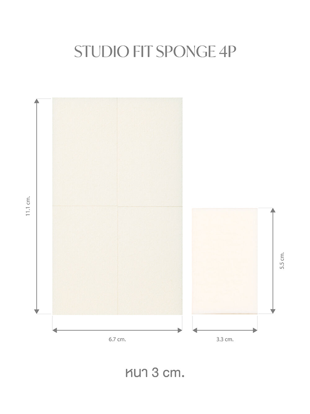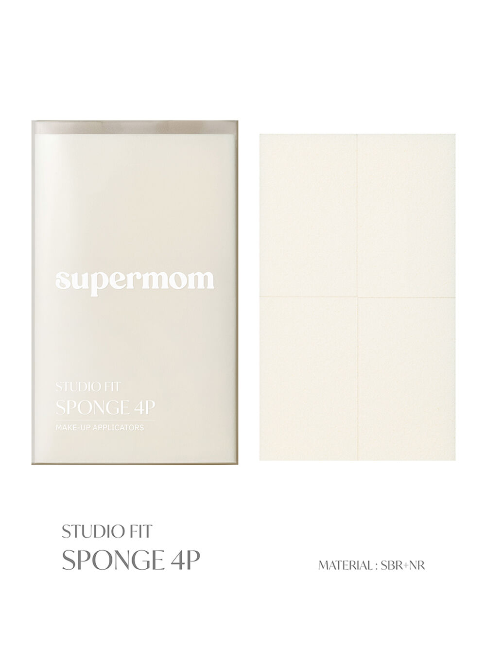 SUPERMOM Studio Fit Sponge 4P 1pc ฟองน้ำสำหรับตบรองพื้นแบบแห้ง 1 ก้อนใหญ่ ฉีกแบ่งได้ 4 ก้อนเล็ก