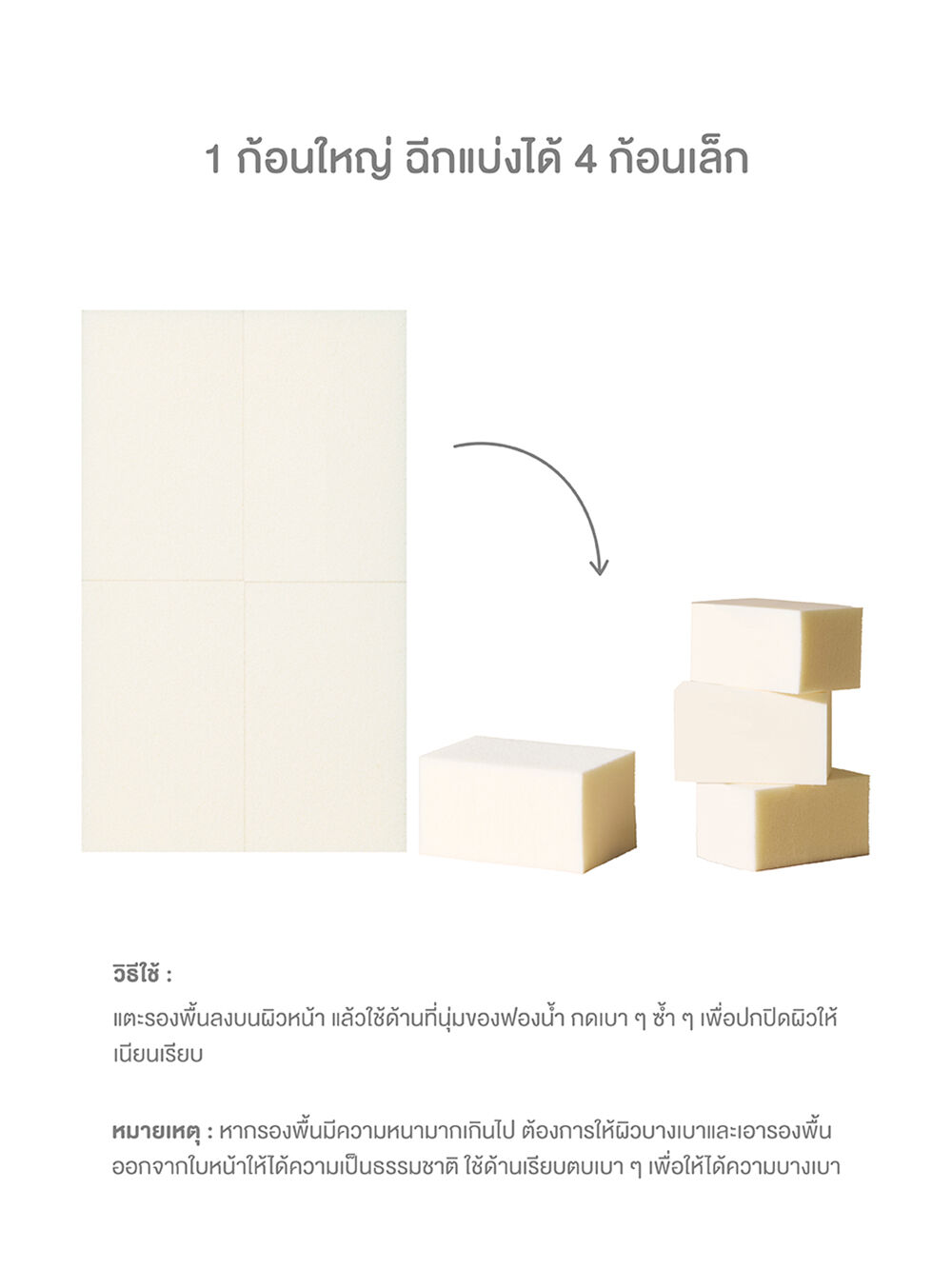 • 1 ก้อนใหญ่ ฉีกแบ่งได้ 4 ก้อนเล็ก
