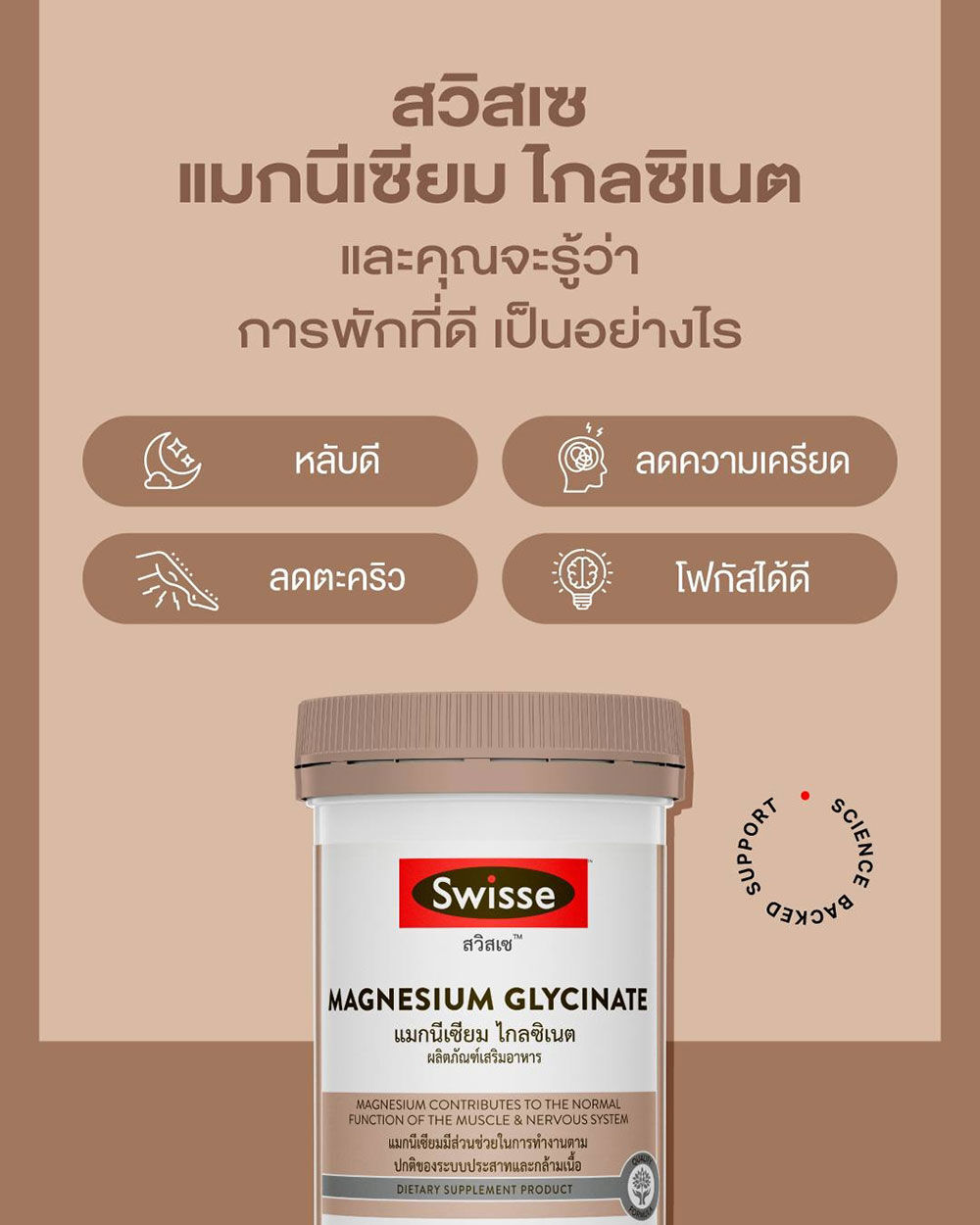 SWISSE Magnesium Glycinate 60 Tablets ผลิตภัณฑ์เสริมอาหารแมกนีเซียม ไกลซิเนต สูตรพรีเมียมที่เลือกใช้แมกนีเซียม ไกลซิเนต 150 มก. ที่ให้การดูดซึมสู่ร่างกายสูง