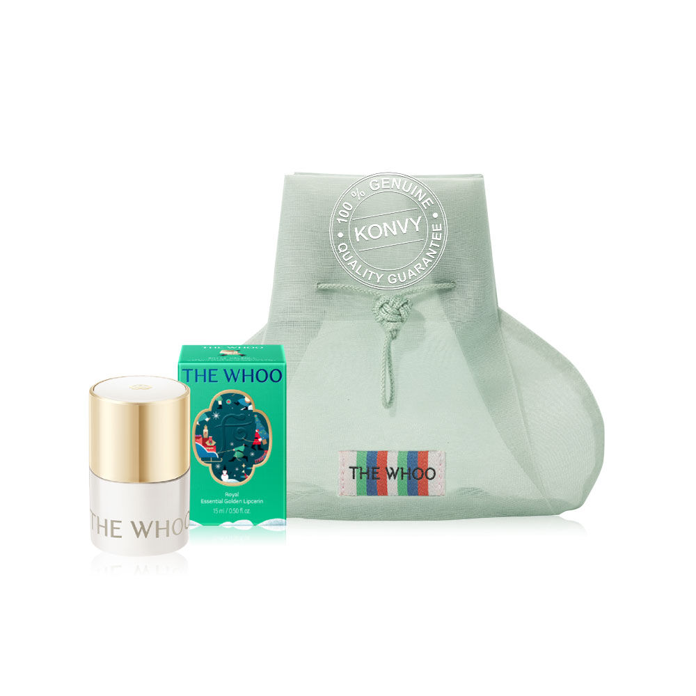 The Whoo Gongjinhyang Mi Royal Essential Golden Lipcerin Special Set เซทลิปบาล์มสูตรเข้มข้น ช่วยบำรุงริมฝีปากให้เรียบเนียน อิ่มฟู ดูเปล่งปลั่ง ด้วยพลังของทองคำบริสุทธิ์ 24K และวิตามินอี ช่วยลดความแห้งกร้านและร่องลึก ฟื้นฟูริมฝีปากให้กลับมานุ่มชุ่มชื้น มีสุขภาพดี พร้อมช่วยชะลอริ้วรอยและคืนความอ่อนเยาว์ให้ริมฝีปากอย่างเป็นธรรมชาติ มาพร้อมกระเป๋ามินิแบบพิเศษ