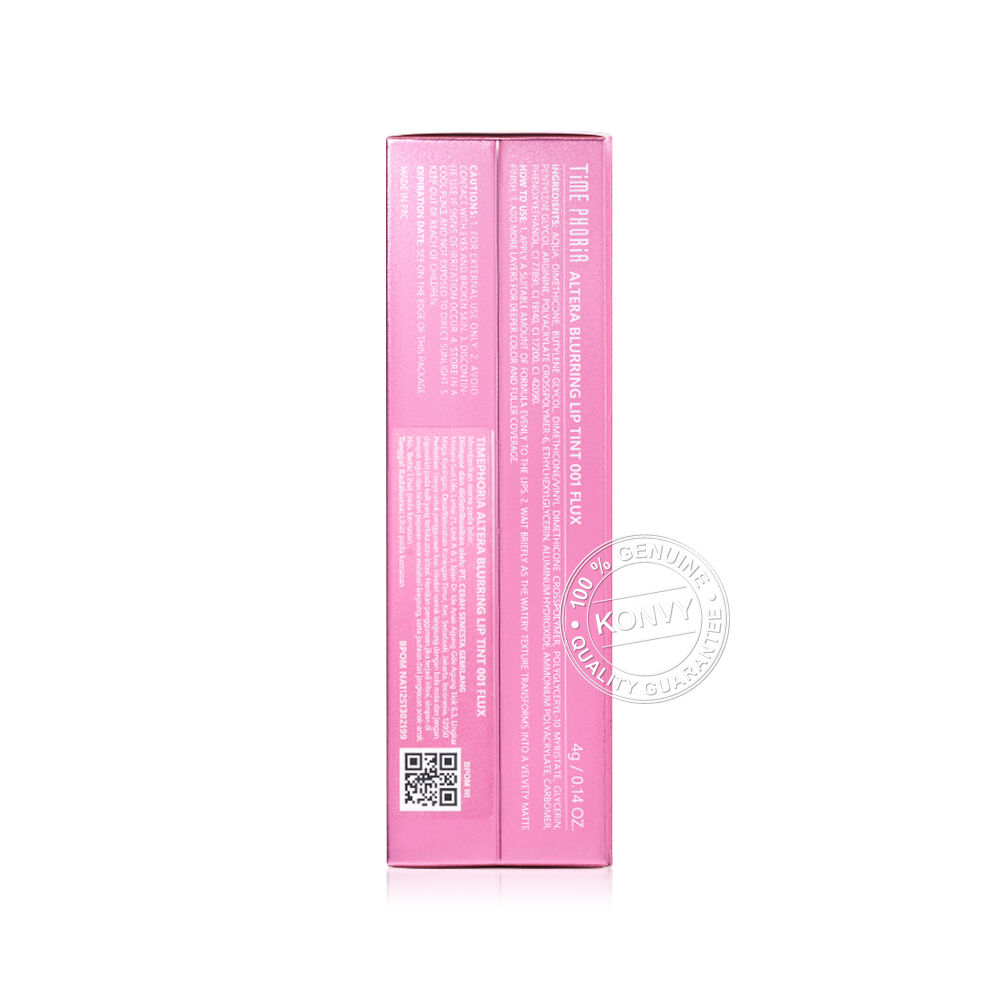 Time Phoria Altera Blurring Lip Tint 4g #001 Flux ลิปทินท์เนื้อน้ำบางเบา สบายปาก เม็ดสีชัด เกลี่ยง่าย ไม่เหนียวเหนอะหนะ ติดทนนาน ให้ฟินิชฉ่ำวาวและเปลี่ยนเป็นซอฟต์แมทเมื่อเซ็ตตัว มีเทคโนโลยี Pure Blur ช่วยเบลอริมฝีปากให้เรียบเนียน ไม่ตกร่อง และเทคโนโลยี Elastomer Water Blend ช่วยเติมความชุ่มชื้นให้ริมฝีปากไม่แห้งกร้าน มอบสีสวยละมุน ให้ริมฝีปากดูอวบอิ่ม