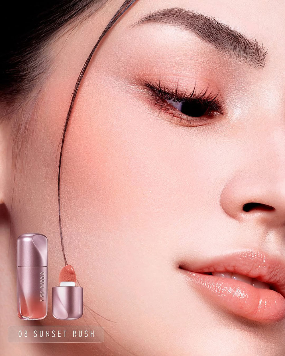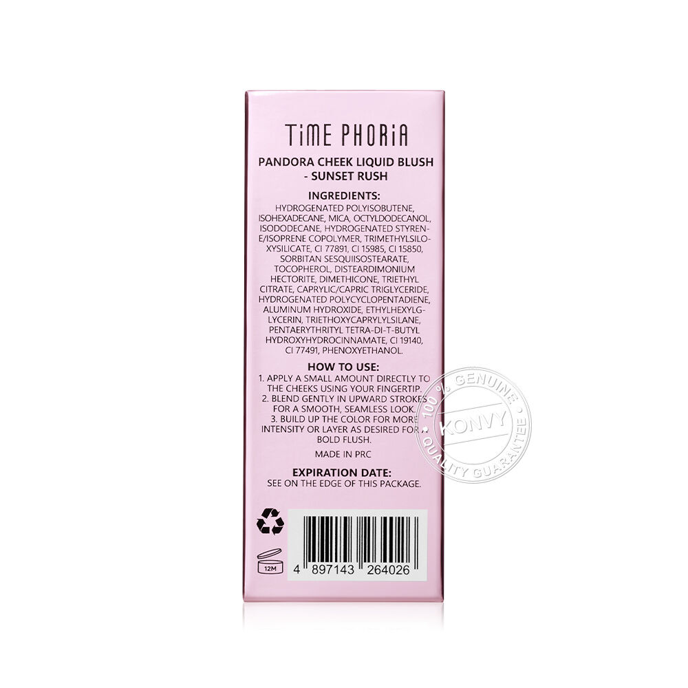 Time Phoria Pandora Cheek Liquid Blush 5g #08 Sunset Rush เผยพวงแก้มเนียนสวยไร้ที่ติ ด้วยลิควิดบลัช เนื้อเกลี่ยง่าย เบาสบายผิว สีแน่นชัด ติดทนนาน มาพร้อมหัวฟองน้ำนุ่มพิเศษ ช่วยให้เบลนด์ลงบนผิวได้อย่างนุ่มนวล