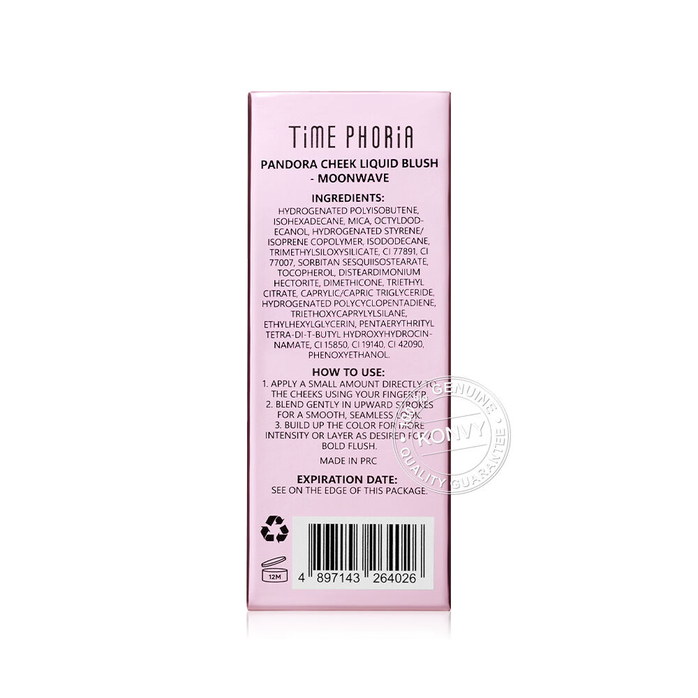 Time Phoria Pandora Cheek Liquid Blush 5g #11 Moonwave เผยพวงแก้มเนียนสวยไร้ที่ติ ด้วยลิควิดบลัช เนื้อเกลี่ยง่าย เบาสบายผิว สีแน่นชัด ติดทนนาน มาพร้อมหัวฟองน้ำนุ่มพิเศษ ช่วยให้เบลนด์ลงบนผิวได้อย่างนุ่มนวล