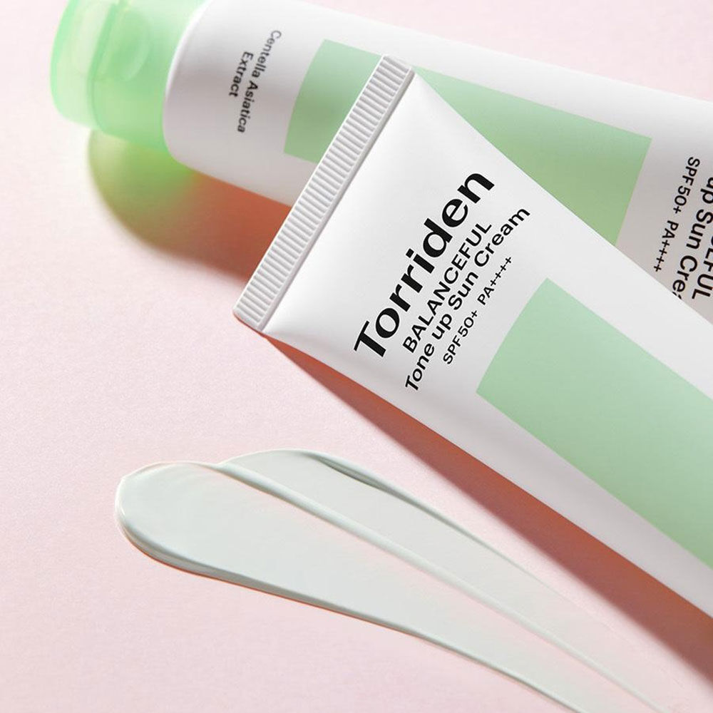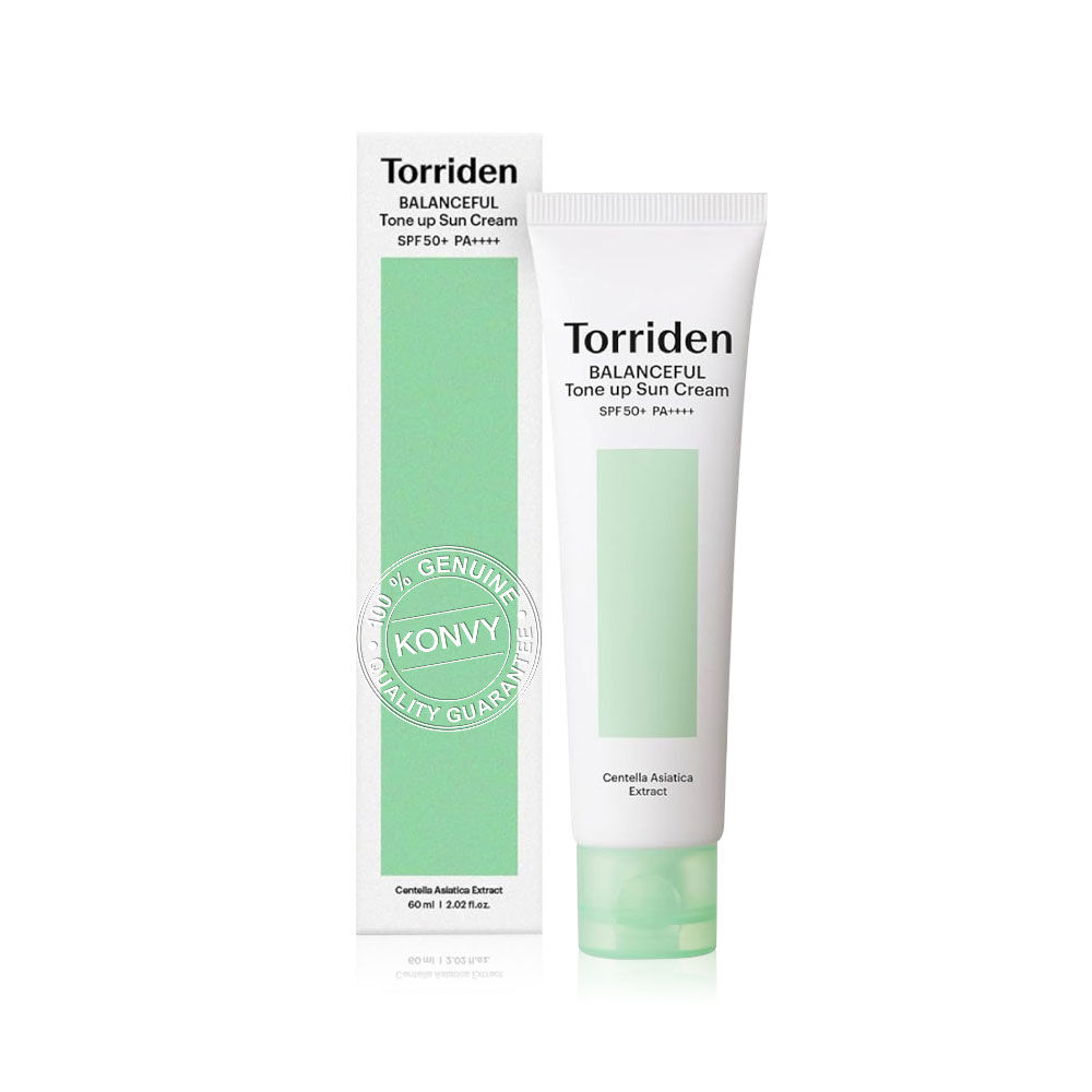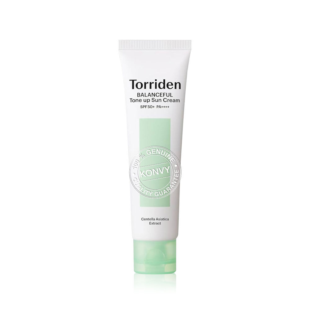 Torriden Balanceful Tone Up Sun Cream SPF50+ PA++++ 60ml ครีมกันแดดโทนอัพ เนื้อครีมสีเขียว บางเบา ไม่เหนียวเหนอะหนะ ช่วยปกปิดรอยแดง และปรับผิวให้สว่างขึ้น พร้อมปกป้องผิวจากแสงแดดด้วย SPF 50+ PA++++ ให้ความชุ่มชื้น ผิวผ่อนคลาย ลดการระคายเคือง และลดผิวอักเสบ