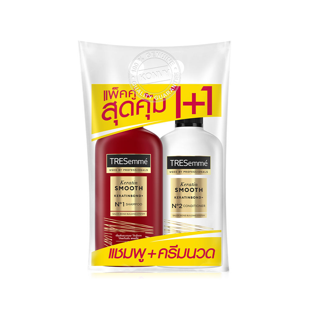 Tresemme Shampoo & Conditioner Keratin Smooth Red Formula [370m x 2 pcs] ชุดบำรุงเส้นผม เคราตินสูตรใหม่ ที่ให้ความเรียบลื่นและจัดทรงง่าย ลดผมชี้ฟู เปลี่ยนผมให้นุ่มสลวย นุ่มลื่น เป๊ะยาวนาน 24 ชั่วโมง