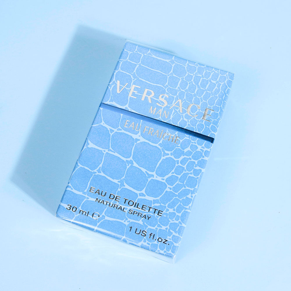 Versace Man Eau Fraiche EDT 30ml น้ำหอมสำหรับผู้ชาย ให้กลิ่นหอมละมุนสดชื่นปนเซ็กซี่ ด้วยกลิ่นผลไม้ผสานกลิ่นใบไม้เขียว อวลด้วยกลิ่นมัสก์ แอมเบอร์ และไม้มะเดื่อ เผยความรู้สึกนุ่มลึกน่าค้นหา