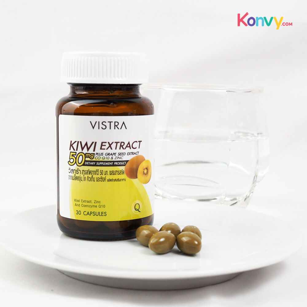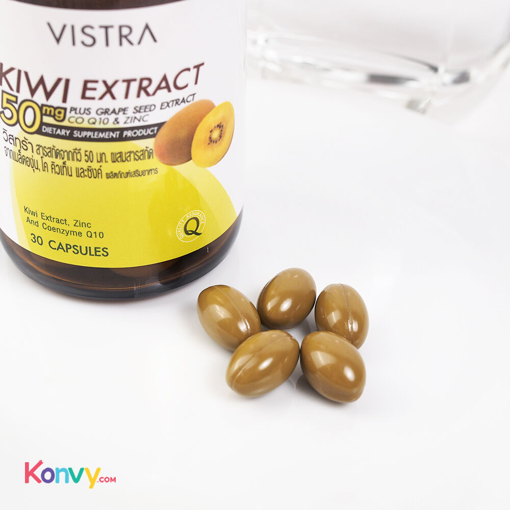Vistra Kiwi Extract 50mg Plus Grape Seed, CO Q10 & Zinc 30 Capsules ผลิตภัณฑ์เสริมอาหารสารสกัดจากกีวี 50 มก. ผสมสารสกัดจากเมล็ดองุ่น โค คิวเท็น และซิงค์