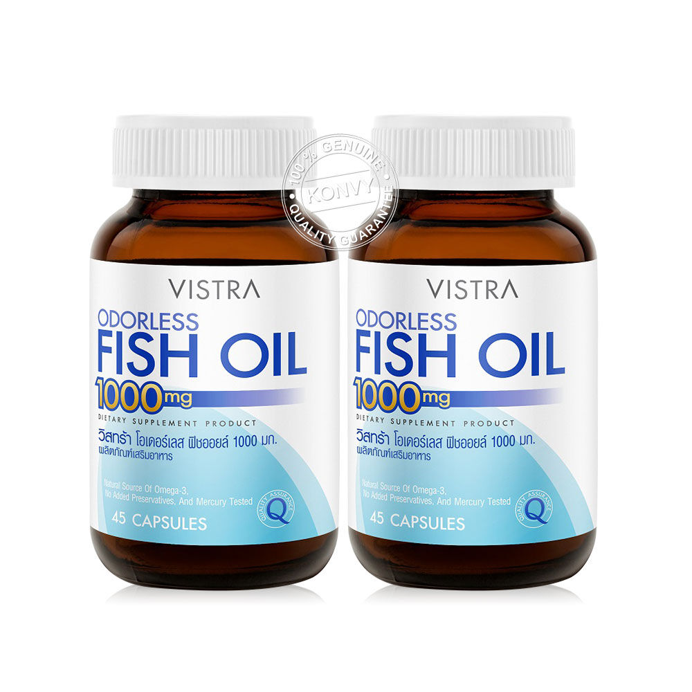 VISTRA Odorless Fish Oil Value Pack [45 Capsules x 2pcs] ผลิตภัณฑ์เสริมอาหารน้ำมันปลา สูตรใหม่ ทานง่าย ไม่มีกลิ่นคาว